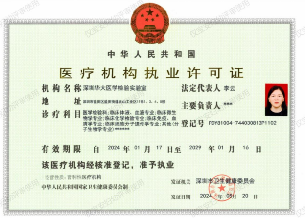 深圳华大医学检验实验室 电话: 0755-25238327 地址:深圳市盐田区盐田街道北山工业区11栋3楼 |