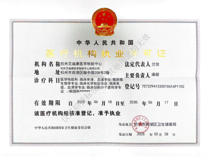 杭州艾迪康医学检验中心有限公司 电话:0571-87779340 地址:浙江省杭州市西湖区三墩镇振中路208号2幢北楼1至5层、2幢南楼1至3层 |