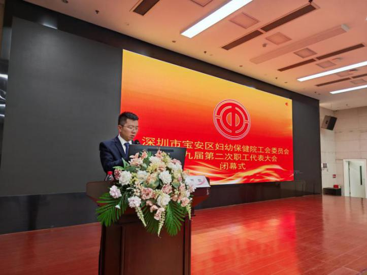 ▲工会专职副主席蔡军红主持会议 大会在雄壮的国歌声中拉开帷幕。会议首先听取并审议通过了《第九届工会委员会工作报告》与《工会经费审查委员会工作报告》,全面总结了过去一年半工会服务职工、履职担当的各项工作。随后进行的民主评议环节采用现场扫码、即时公布方式,全程公开透明,充分体现了民主管理与民主监督,标志着会员代表大会顺利完成。 ▲工会主席王洪锐做工会委员会工作报告 随后召开的职工代表大会,重点围绕医院未来发展展开。党委书记朱元方同志作《医院工作报告》,系统总结了2025年医院在医疗服务、学科建设等方面取得的成效,为“十四五”规划落实提交了一份扎实答卷。同时,他对《深圳市宝安区妇幼保健院“十五五”发展规划(征求意见稿)》进行了深入解读与部署,为医院新一轮高质量发展描绘了清晰蓝图,指明了前进方向。 ▲党委书记朱元方做医院工作报告和解读“十五五”规划 大会审议并通过了《2025年财务工作报告》《深圳市宝安区妇幼保健院医德医风及行风奖惩管理办法》《深圳市宝安区妇幼保健院专业技术职务聘任管理工作方案》等重要文件,从财务运行、行风建设、人才队伍等多方面夯实了医院可持续发展基础。 ▲会议现场 分组讨论期间,代表们以高度负责的态度,围绕各项报告与规划积极建言献策,充分展现了共谋发展的集体智慧。经全体代表表决,大会一致通过各项决议,体现了统一的思想共识与坚定的行动决心。 ▲代表们热烈讨论 闭幕式上,专职党委副书记罗凯同志发表讲话,提出三点希望:一是坚持党建引领,把握正确方向;二是坚守服务初心,夯实发展根基;三是凝聚奋进合力,共创医院新篇。讲话既是对大会的总结,更是对全院干部职工的动员,号召大家将“十五五”规划转化为切实服务妇女儿童健康的具体实践。 ▲专职党委副书记罗凯做闭幕讲话 最后,大会在激昂的《国际歌》声中圆满闭幕。本次大会承前启后、凝聚共识、鼓舞斗志,标志着宝安区妇幼保健院迈向新的发展阶段。全院职工将以此次大会为契机,牢记使命、务实进取,奋力开创医院高质量发展新局面,为辖区妇女儿童健康事业作出更大贡献。