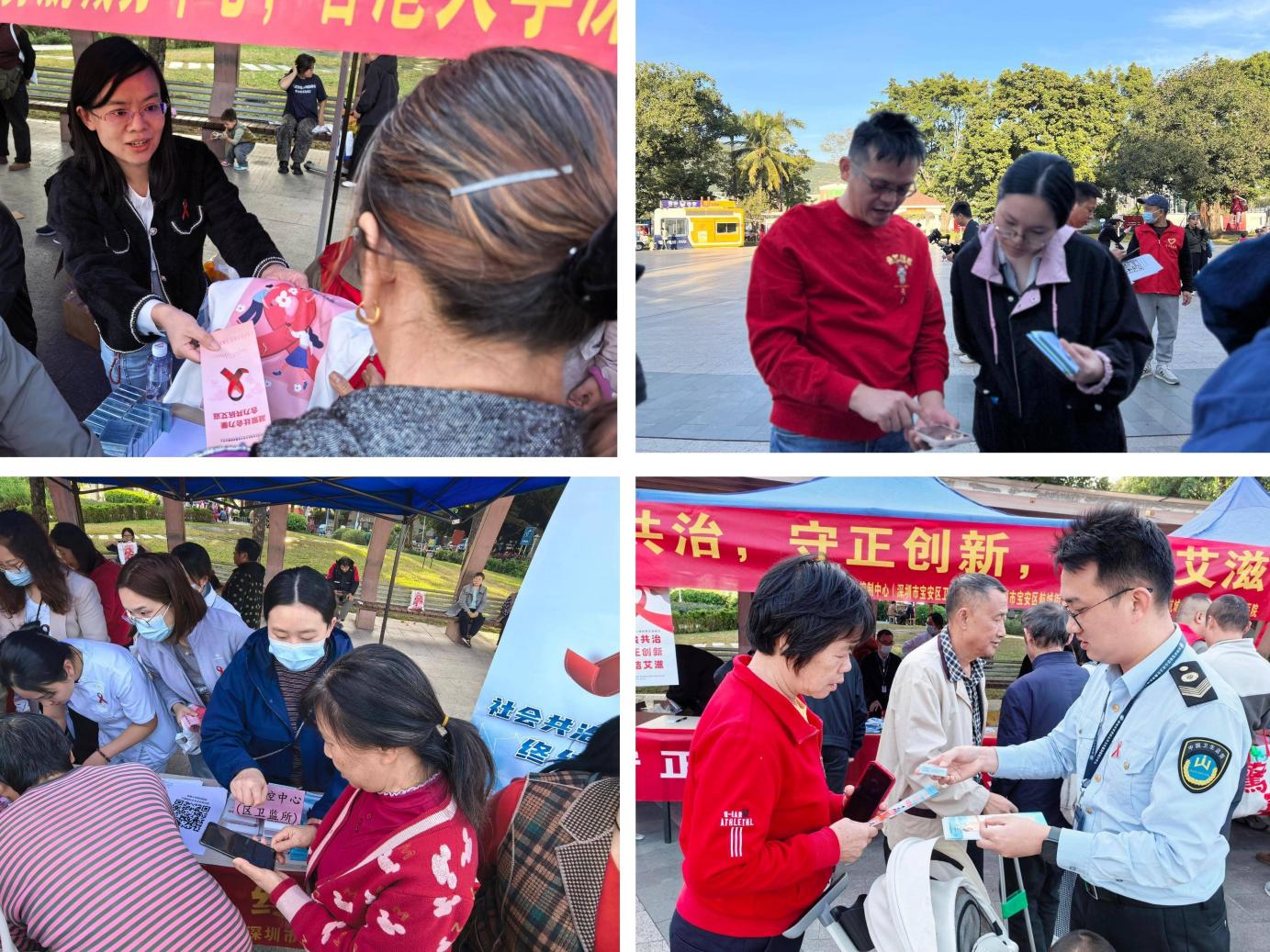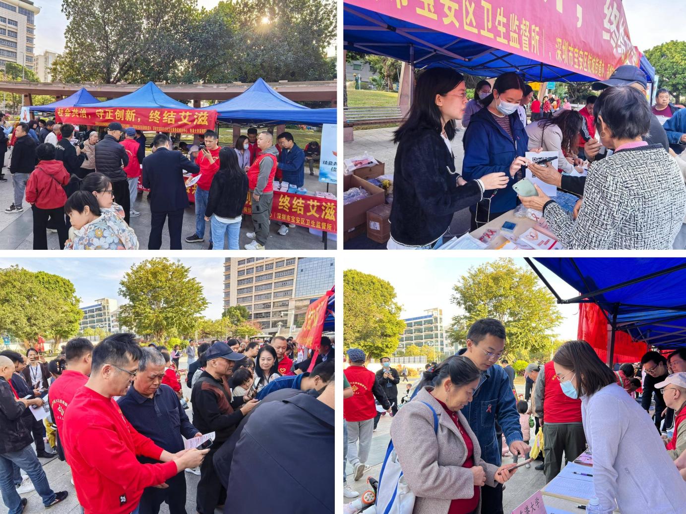 在第38个“世界艾滋病日”来临之际,为积极响应“社会共治,守正创新,终结艾滋”主题,11月28日,深圳市宝安区疾病预防控制中心(深圳市宝安区卫生监督所)联合深圳市宝安区航城街道办、深圳市宝安区公共卫生服务航城分中心、香港大学深圳医院等单位,在宝安区航城街道黄田公园开展 “世界艾滋病日” 主题宣传活动。现场设置知识展览、义诊活动、有奖答题、现场互动答疑等环节,吸引了超过500名居民参与,其中老年人、中小学生参与人数较多,活动气氛有序而热烈,有效提升了居民的防艾知识知晓率。