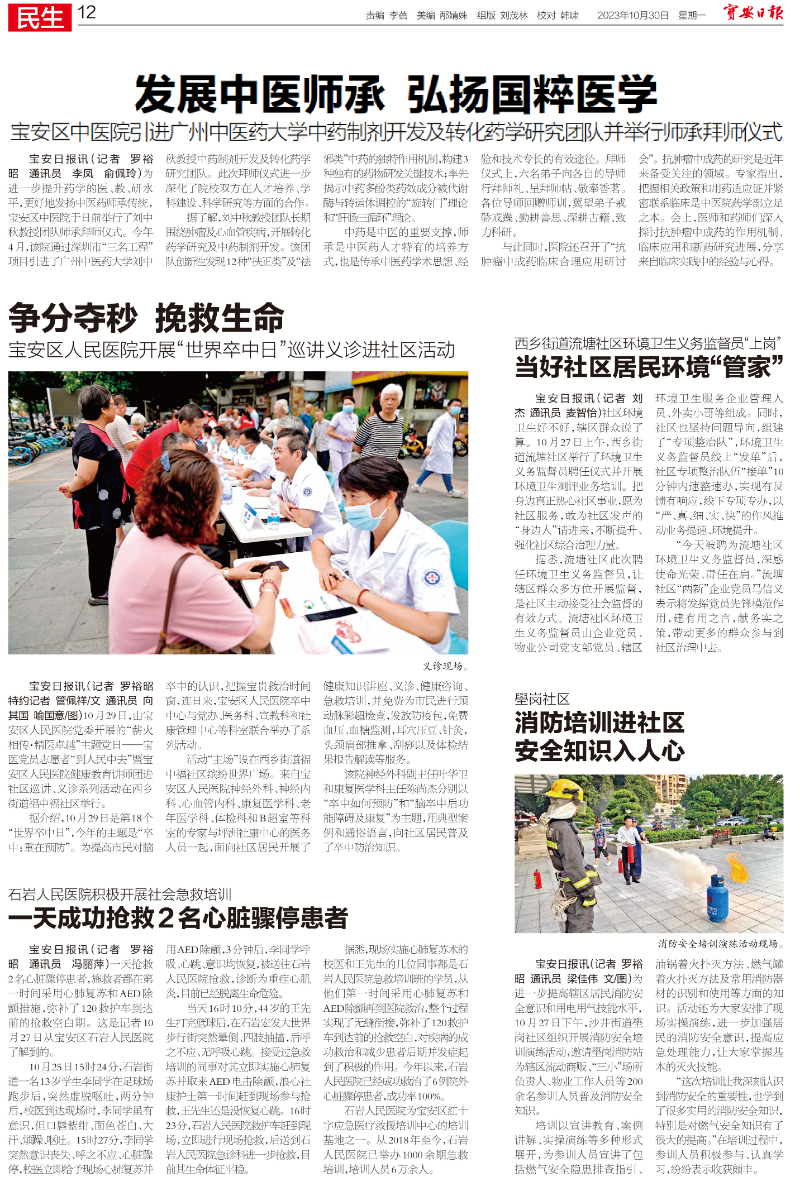 [宝安日报] 一天成功抢救2名心脏骤停患者