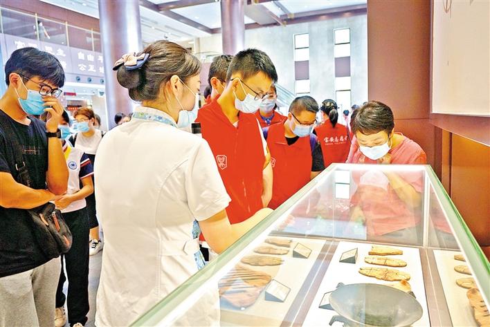 青少年代表和义工代表参观中医药文化展馆。